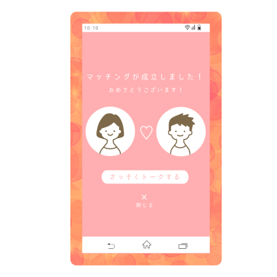 渡辺さん(58歳男性)使い方がとても簡単で、最初は少し不安でしたが、すぐに慣れました。気軽にメッセージのやりとりができるので、自然体で接することができ、素敵なパートナーと巡り会えました!